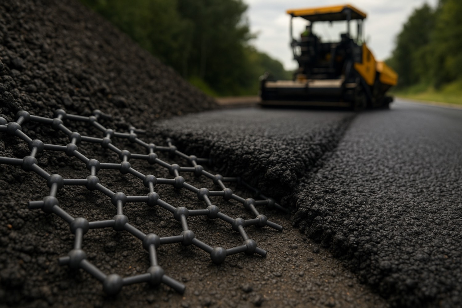 گرافن، لایهای تکاتمی از کربن با ساختار شبکهای دوبعدی، هنگامی که با قیر ترکیب میشود، نقش نوعی اسکلت مولکولی را ایفا میکند که استحکام ساختاری آسفالت را بهطور چشمگیری افزایش میدهد. پژوهشها نشان میدهد که این نوع آسفالت میتواند تا ۲۵۰ درصد دوام بیشتری نسبت به آسفالت معمولی داشته باشد، زیرا مقاومت آن در برابر خستگی مصالح و آسیبهای ناشی از شرایط آبوهوایی بیشتر است.